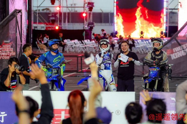 表演尾声,Lance与Reylie携手完成了一车双人后空翻跳跃,再次点燃全场热情,掌声雷动,喝彩不绝。八位车手更在结束后临时返场,于空中向观众致以最后的告别。他们不舍地走向观众席,与大家热情互动,合影留念,并表达了再次回归赛车小镇、奉献更多精彩演出的愿望。